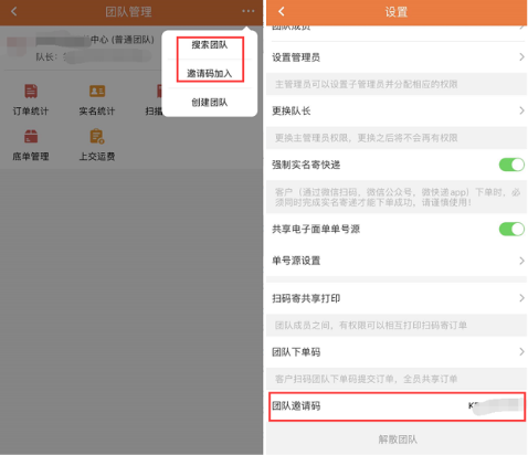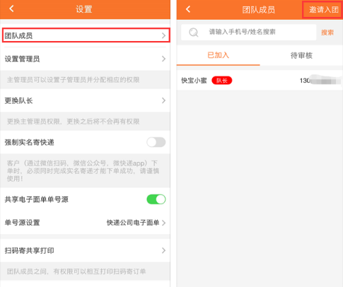 - 队长可共享电子面单单号源给全团队,无需费时账号